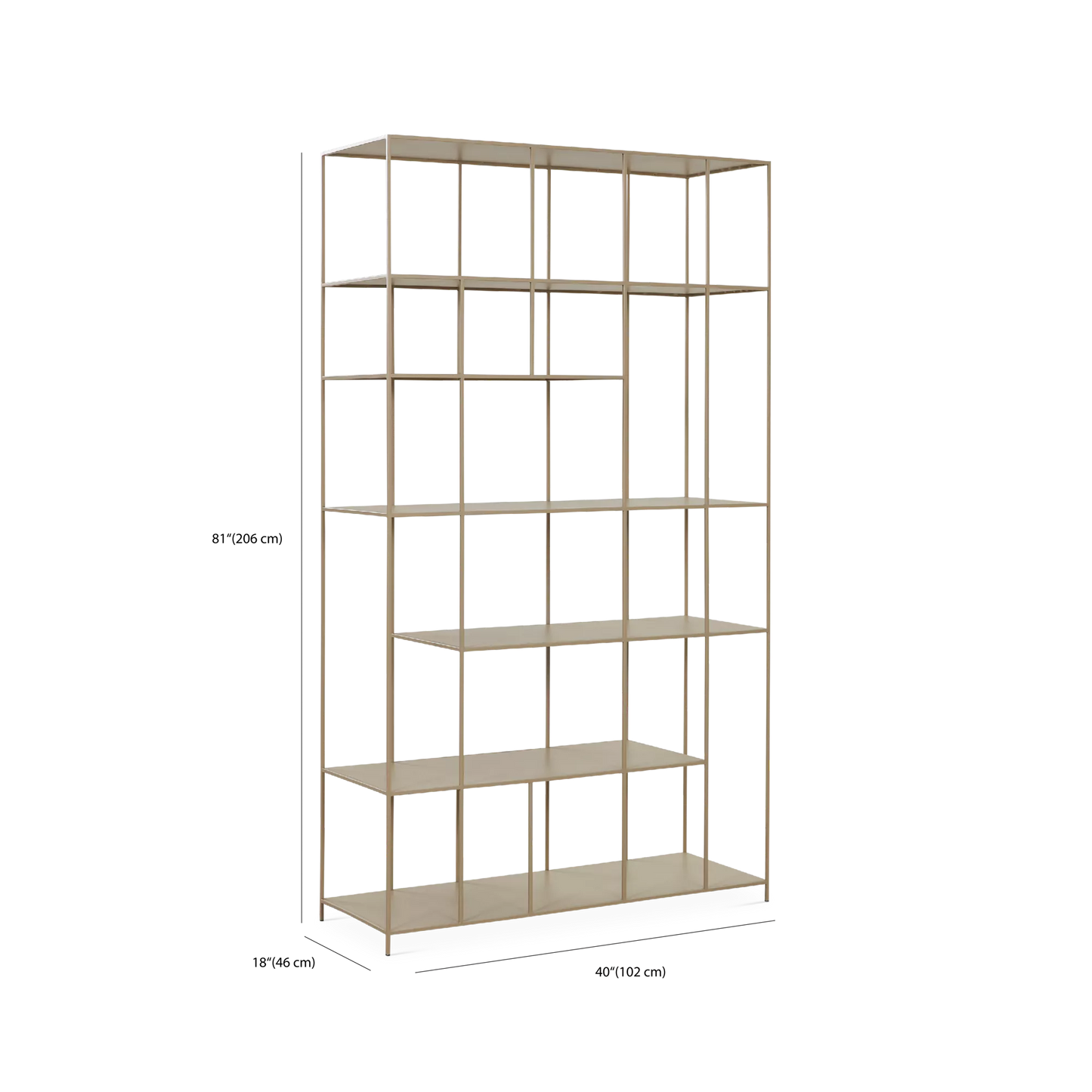 The Stripe bookcase is a study in sleek minimalism with its open storage and clean-lined style. Crafted entirely in metal, its slim frame offers an airy and architectural profile. Multiple shelves provide space for books and decorative objects, bringing both a functional touch and refined modern presence to any room.