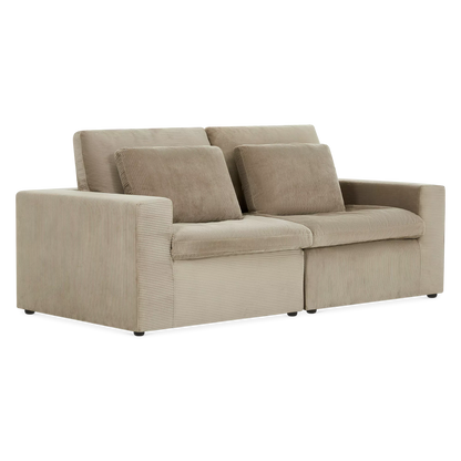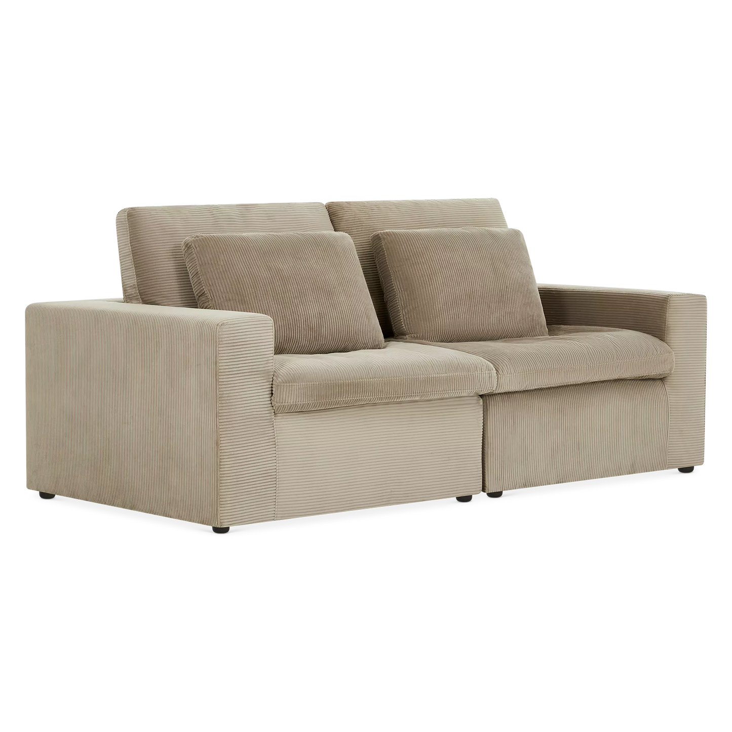 Your living room, your way. Create a customized sofa arrangement by combining modules from the Sutton collection, or opt for one of its turnkey configurations. Not only does this collection adapt to all spaces, but its low profile, large soft cushions and spacious seating, fully upholstered in soft corduroy, offer irresistible comfort with a modern look.