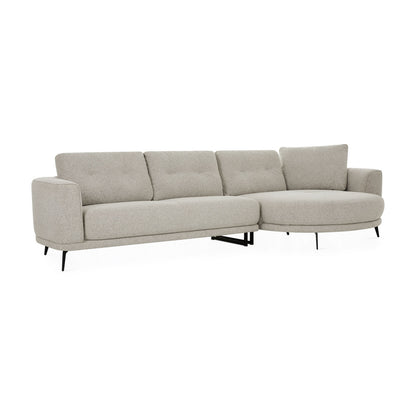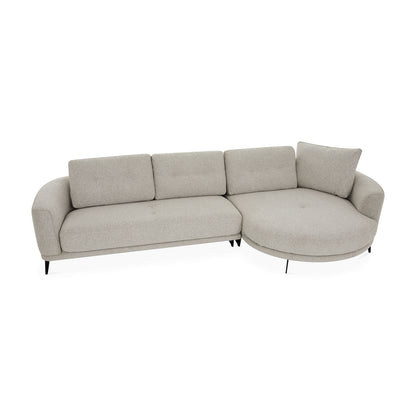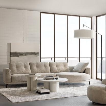 With its rounded chaise lounge, the Sylvie sectional sofa is designed for relaxing evenings. Its piped seams and slender, angled legs add a retro-futuristic touch to take your decor to a whole new dimension. Fusing supple comfort and sleek design, it brings softness and visual appeal to create a living space that’s at once cozy and chic.