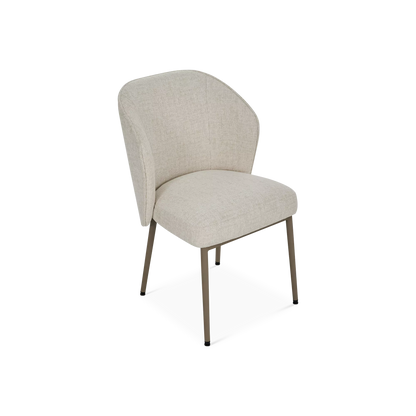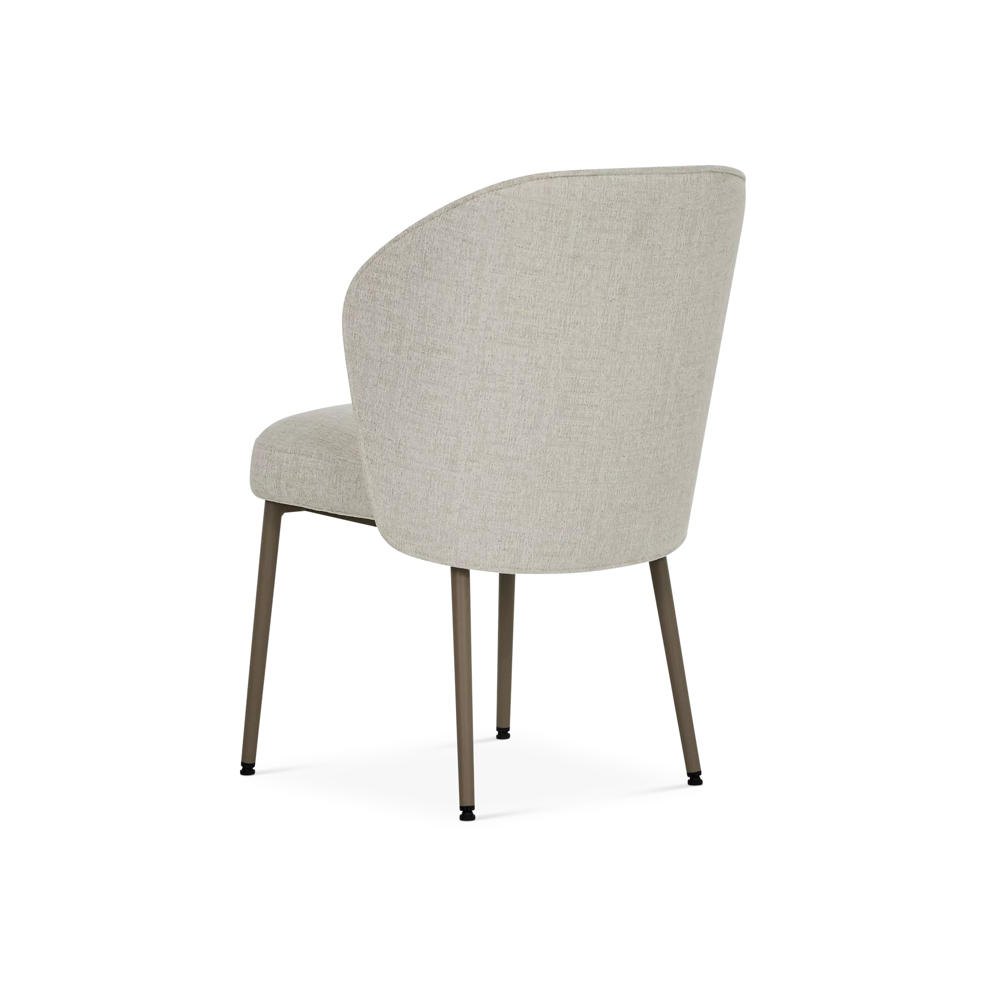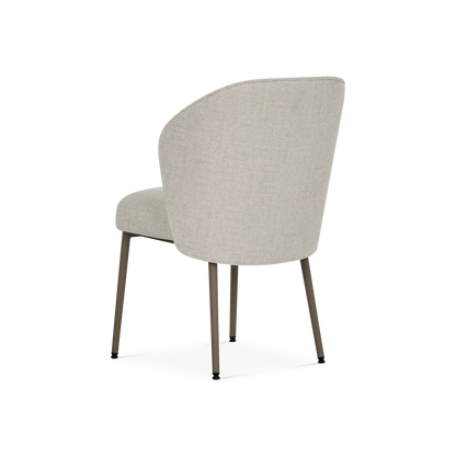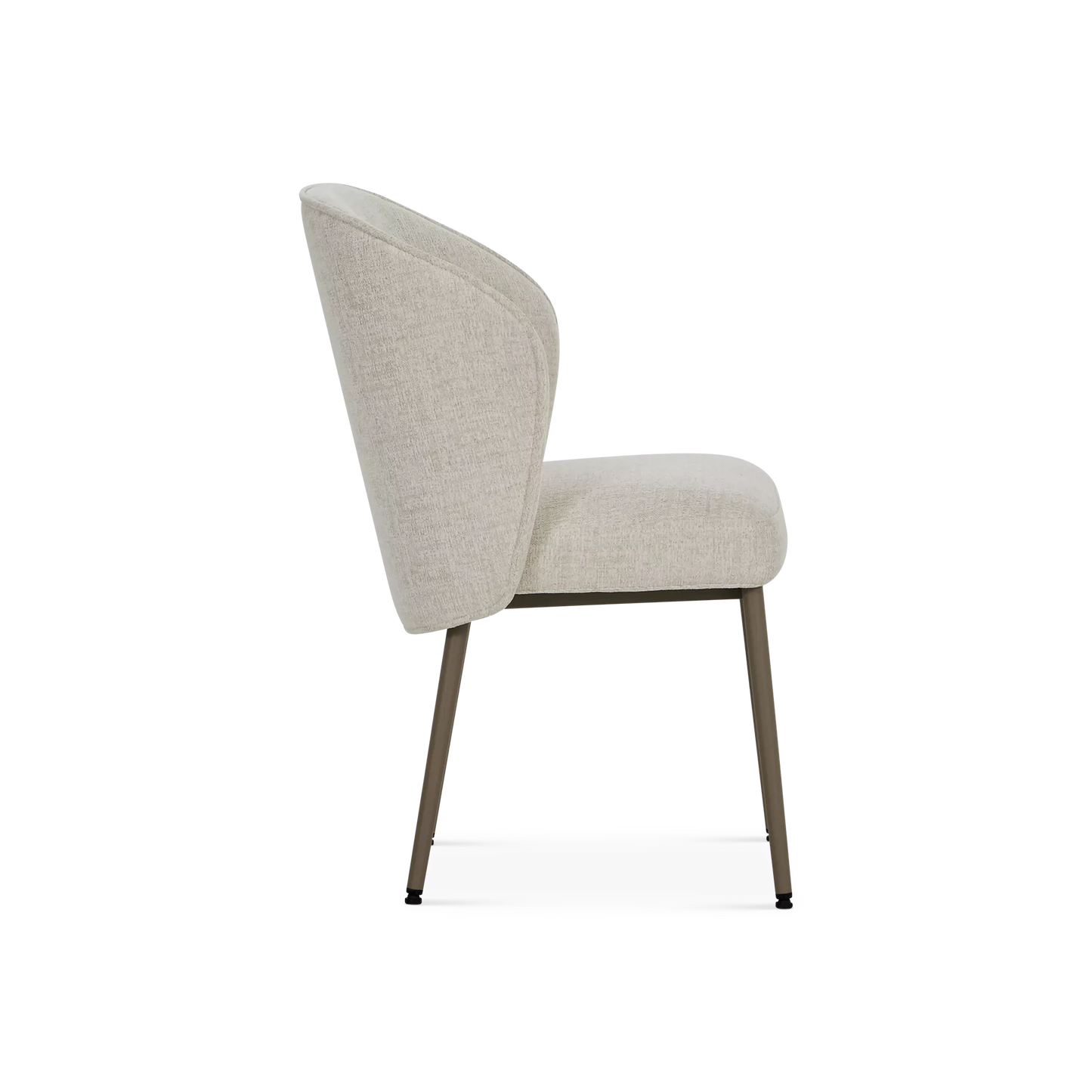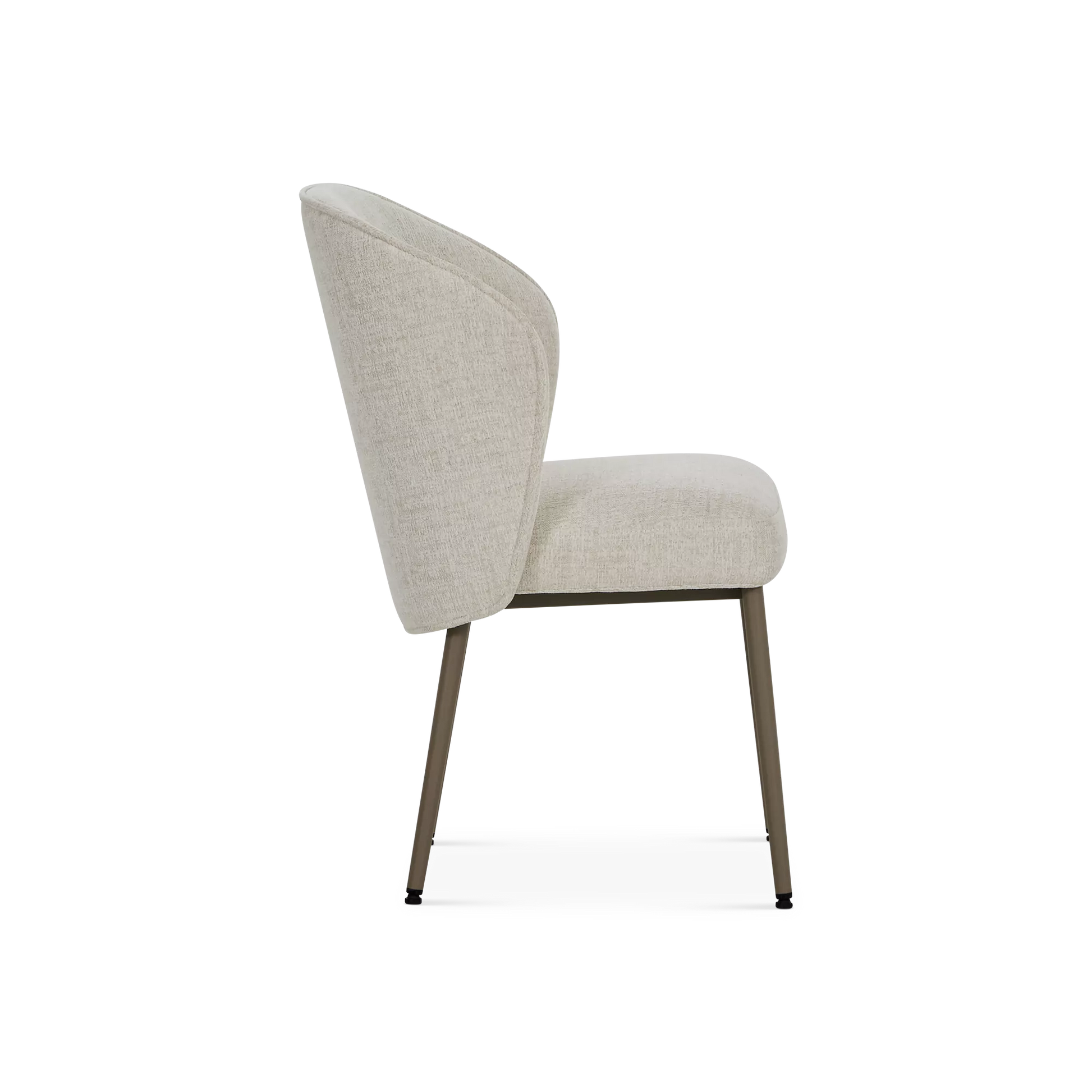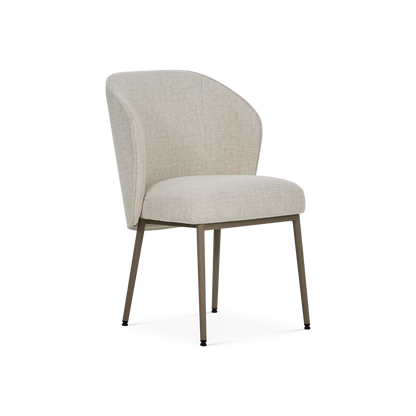 Like a frame that cradles the body, the backrest of the Tessa chair seems to wrap around in a one fluid, embracing motion. Designed by Trica, it pairs an airy metal base with soft, textured fabric to offer quiet comfort and a distinctly contemporary look.