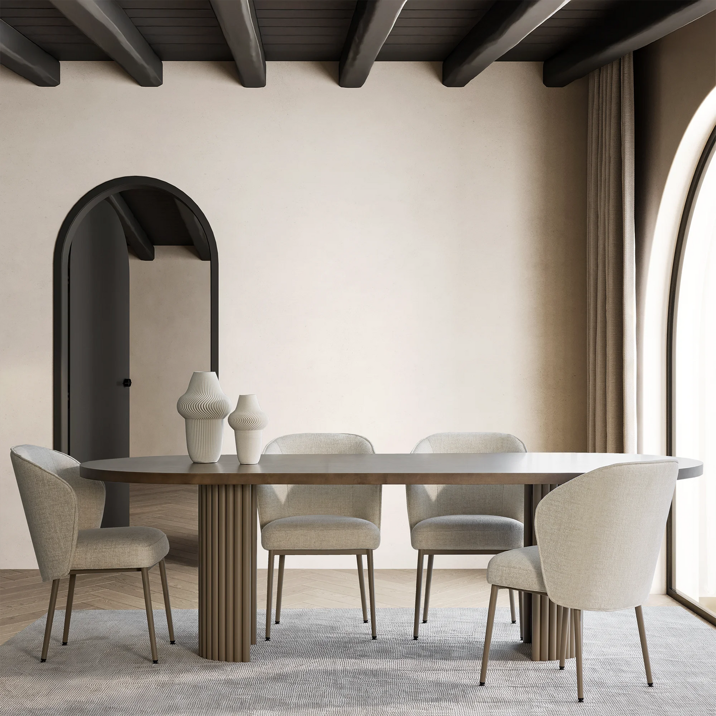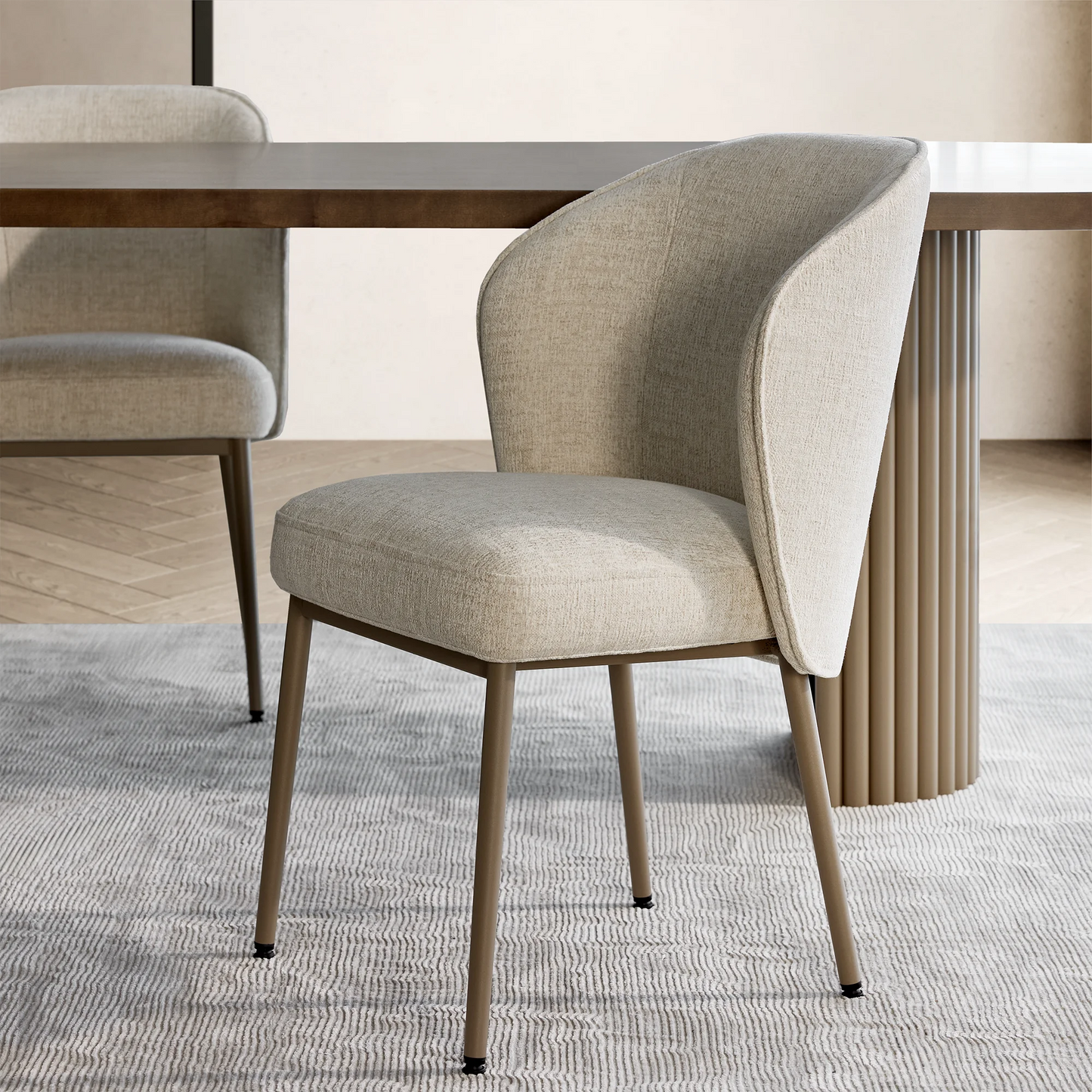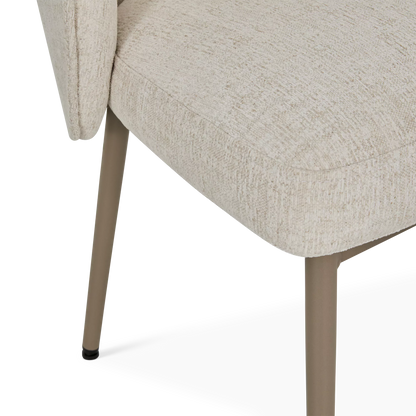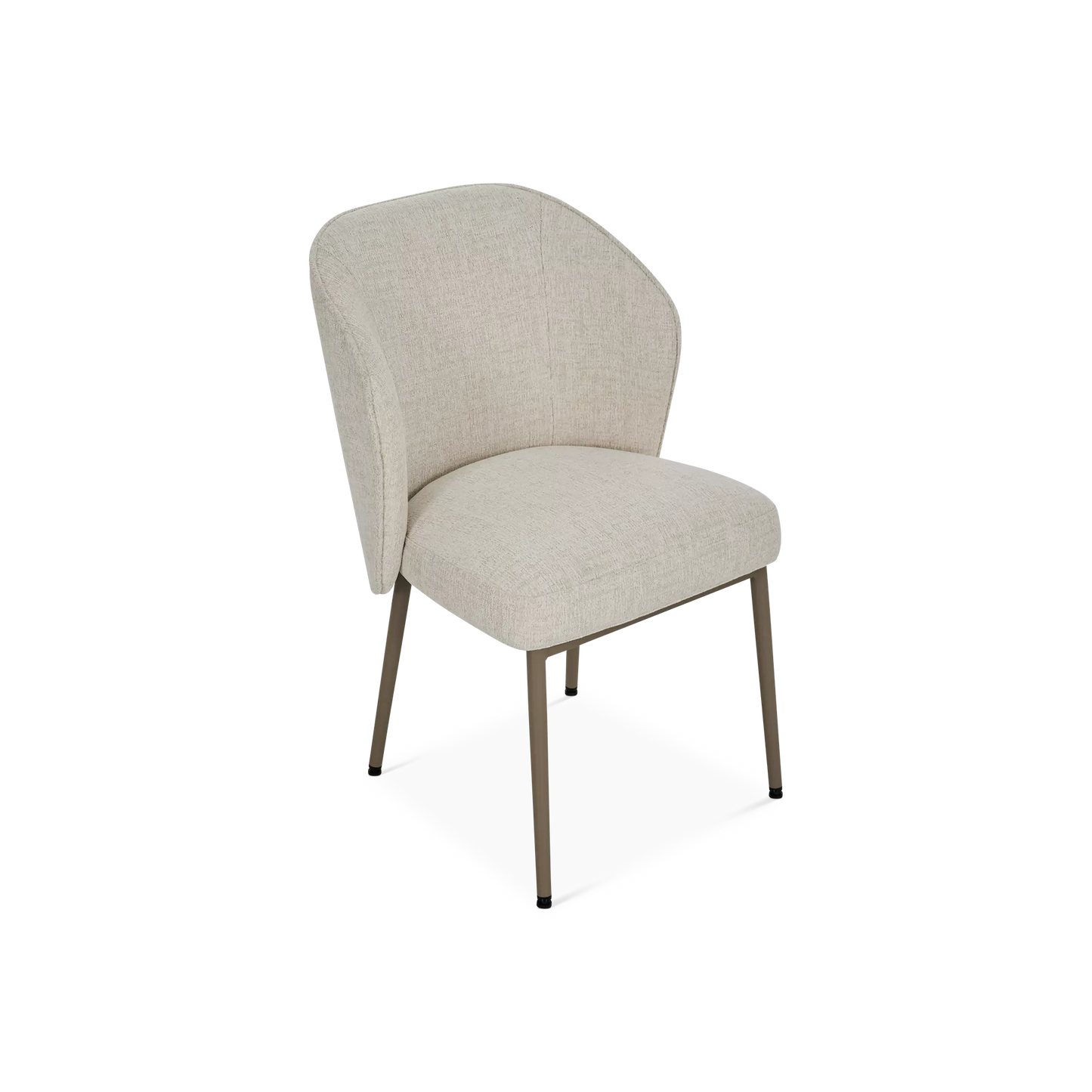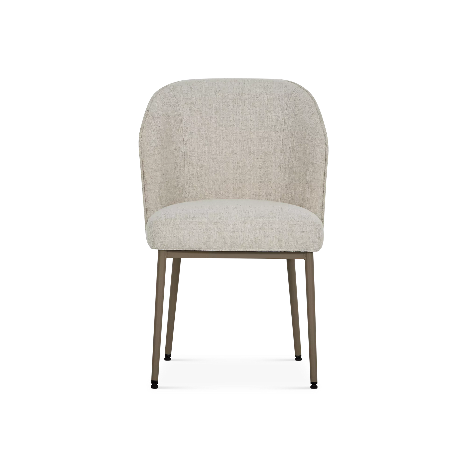 Like a frame that cradles the body, the backrest of the Tessa chair seems to wrap around in a one fluid, embracing motion. Designed by Trica, it pairs an airy metal base with soft, textured fabric to offer quiet comfort and a distinctly contemporary look.