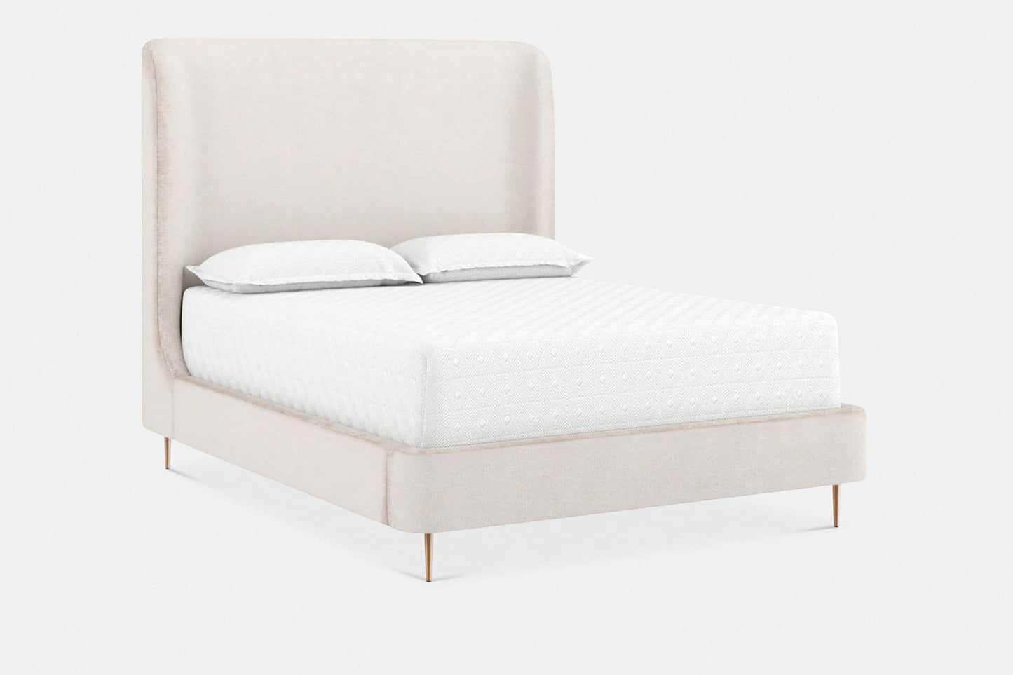 Looking to give your bedroom a touch of softness? Featuring a padded, gently curved headboard and taupe fabric upholstery, the Tierra bed is made for modern comfort. Its copper-plated steel feet add subtle yet elegant polish. A true symbol of tranquility that’s as soothing as it is calming.