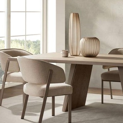 The Canadian-made Timeless dining table features a mix of metal and solid wood. Its ivory-hued cherrywood top perches proudly on a sculptural base composed of a metal frame lined with wood. Timeless is a table that lives up to its name, designed to elevate any dining room for years to come.