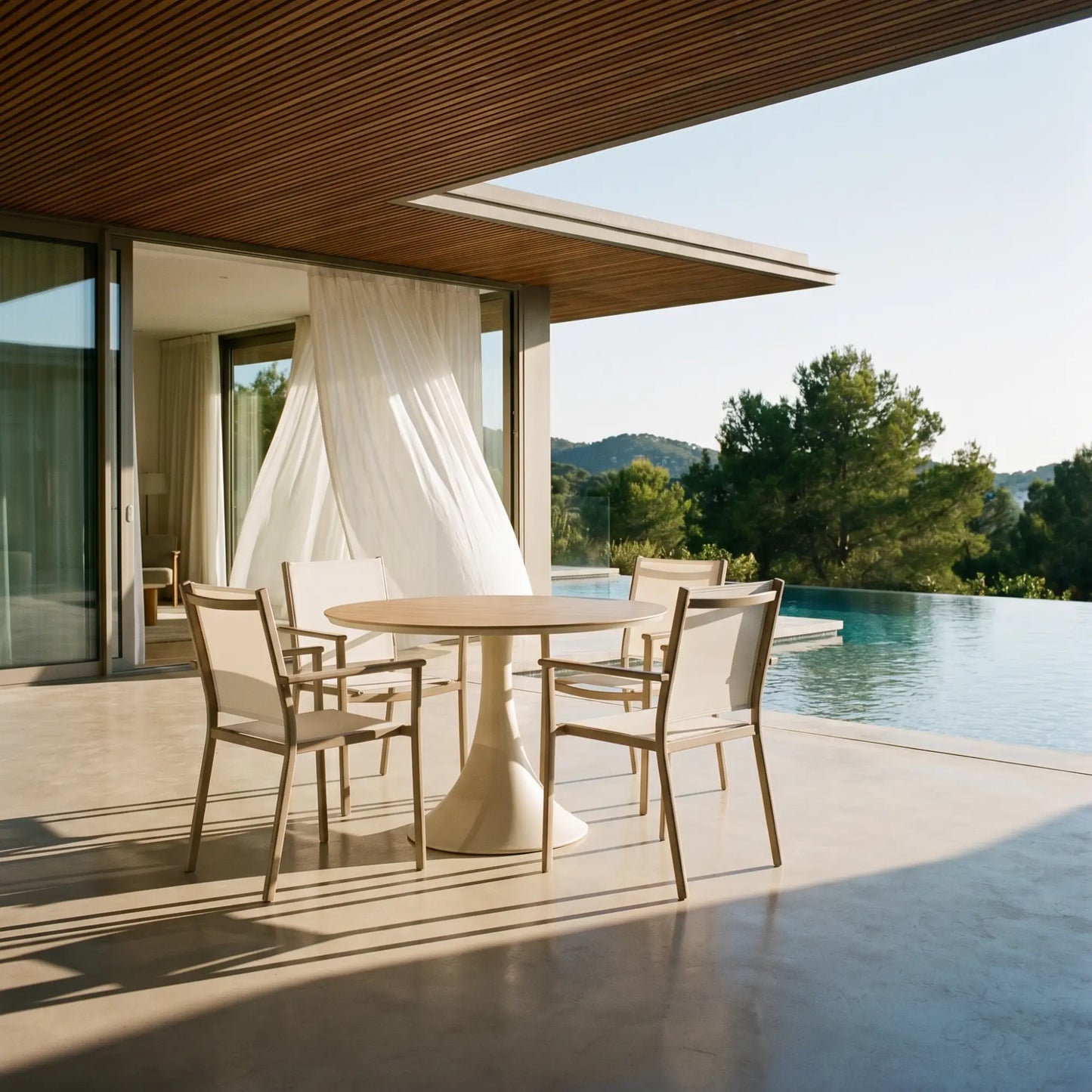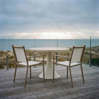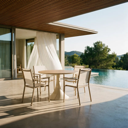 Mobility & Storage:• Sa silhouette iconique à piétement central offre une liberté de mouvement totale en éliminant l’obstruction des pattes de coin traditionnelles, permettant d’ajouter des convives sans contrainte. Cette base épurée maximise non seulement l’espace pour les jambes pour un confort accru, mais elle assure également une stabilité optimale sur les surfaces extérieures inégales, tout en facilitant grandement l'entretien de votre terrasse.