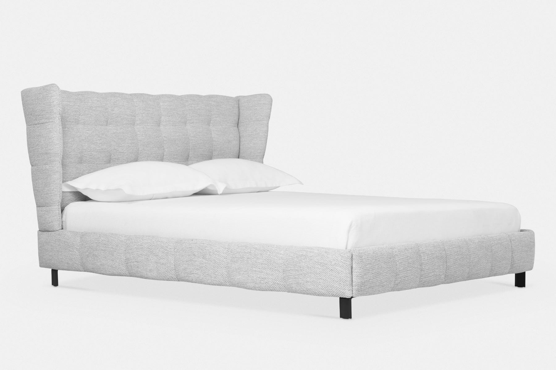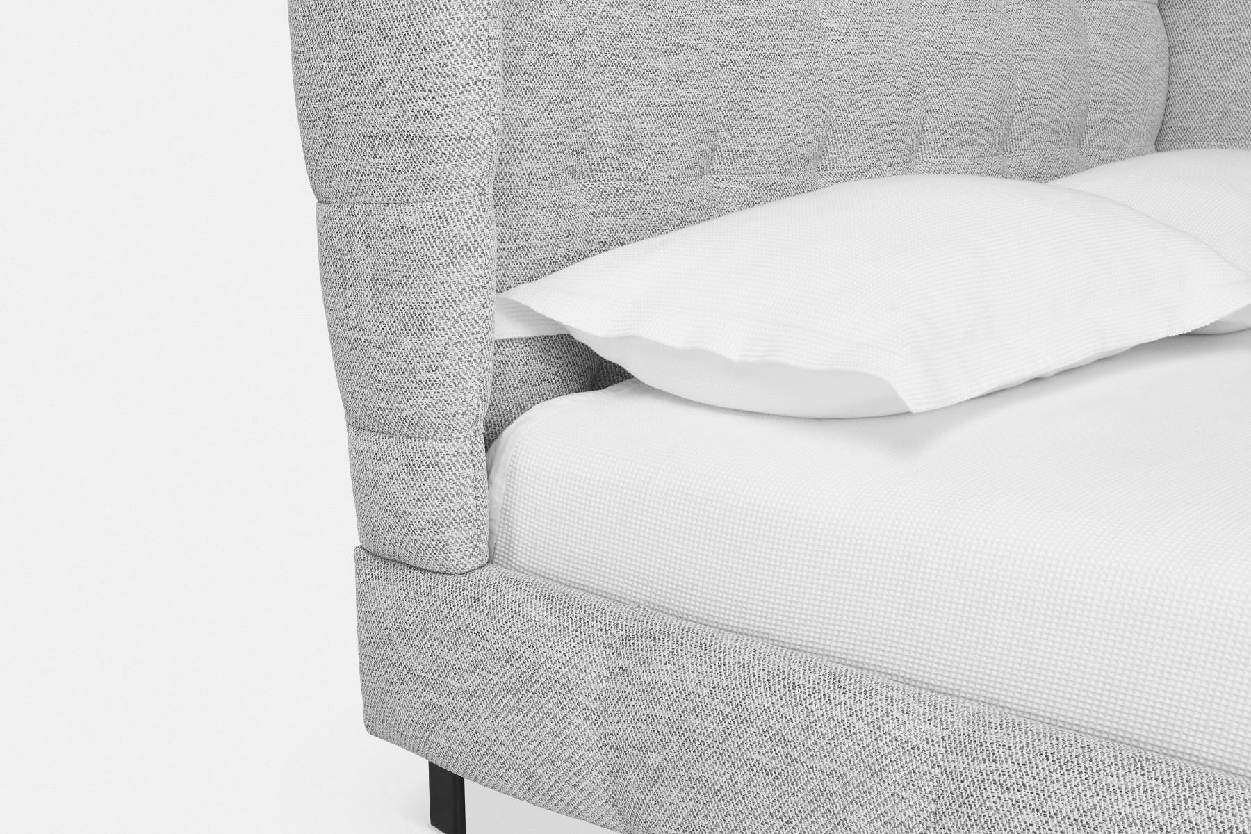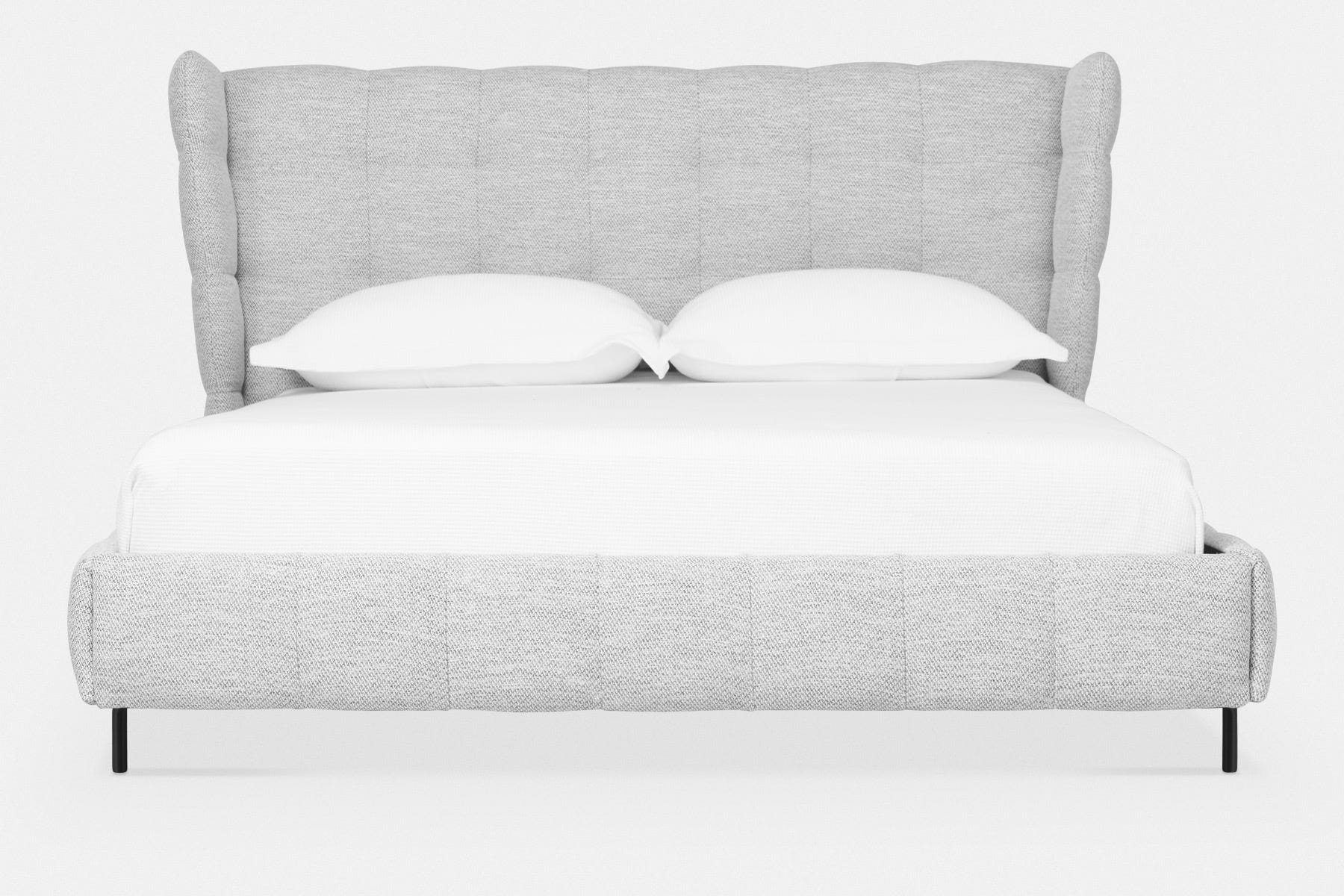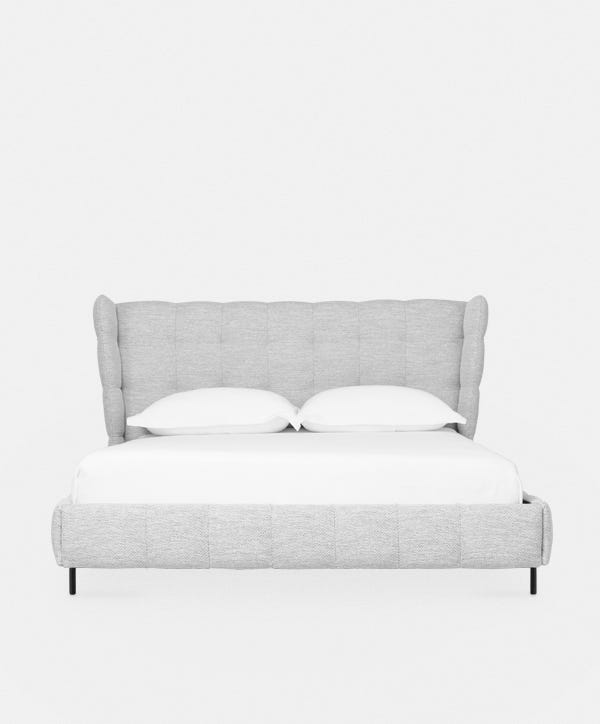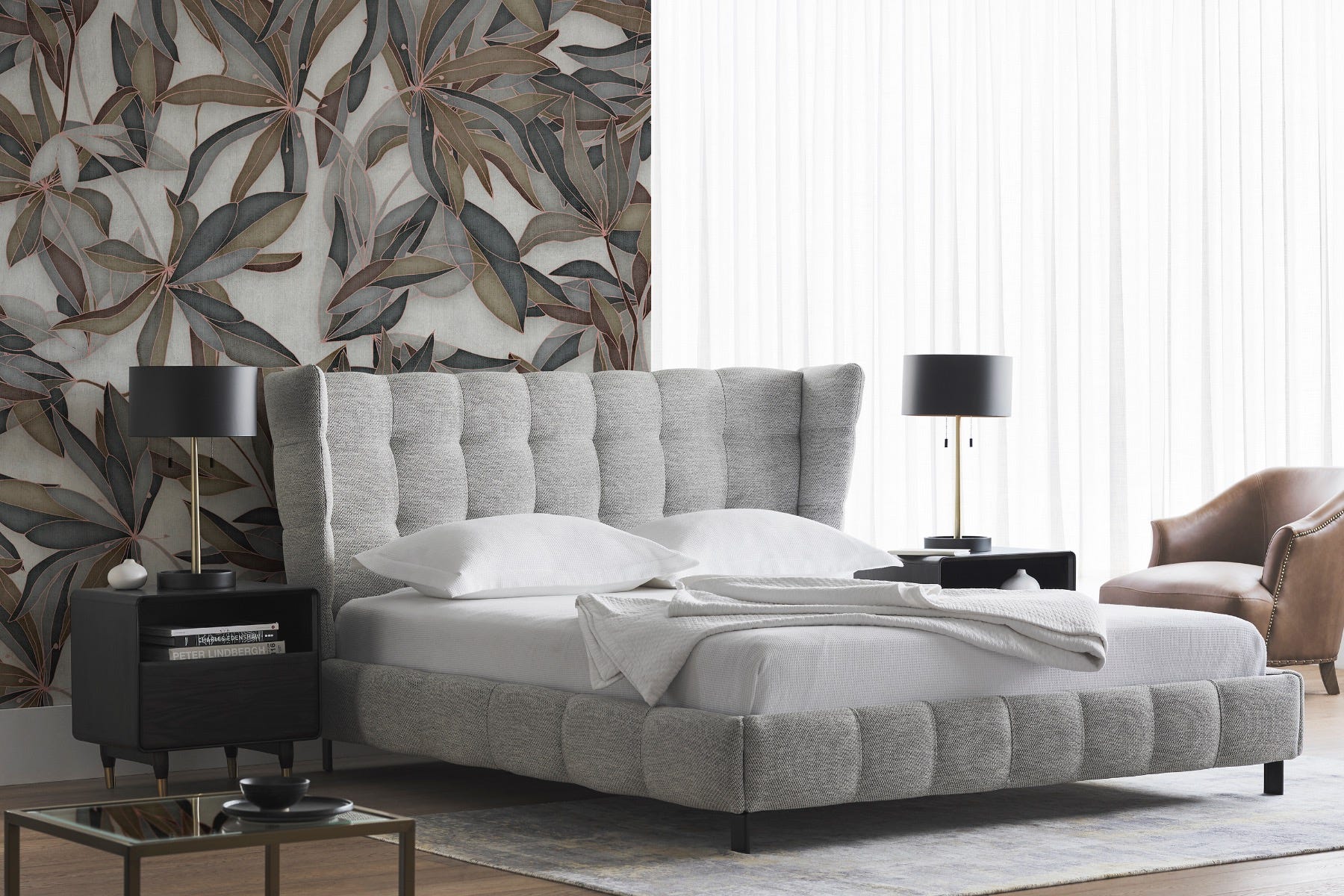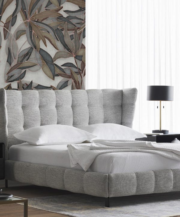 Generously padded with an upholstered headboard, the Mario bed stands out for its slightly curved silhouette and inviting air. Its Swedish fabrication is reflected in its quality and design.