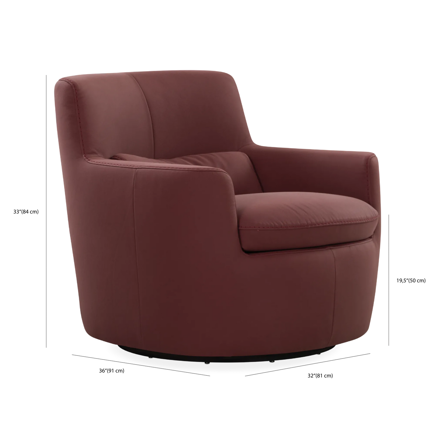 The Vero swivel chair is the perfect blend of inviting comfort and modern style. It features a gracefully curved, barrel silhouette to offer an embracing and supportive feel. Upholstered in soft-to-the-touch fabric, it’s finished with clean lines and subtle seams for a refined look. Its seamless swivel base allows for effortless movement and a 360-degree view, making it a versatile addition to any living space.