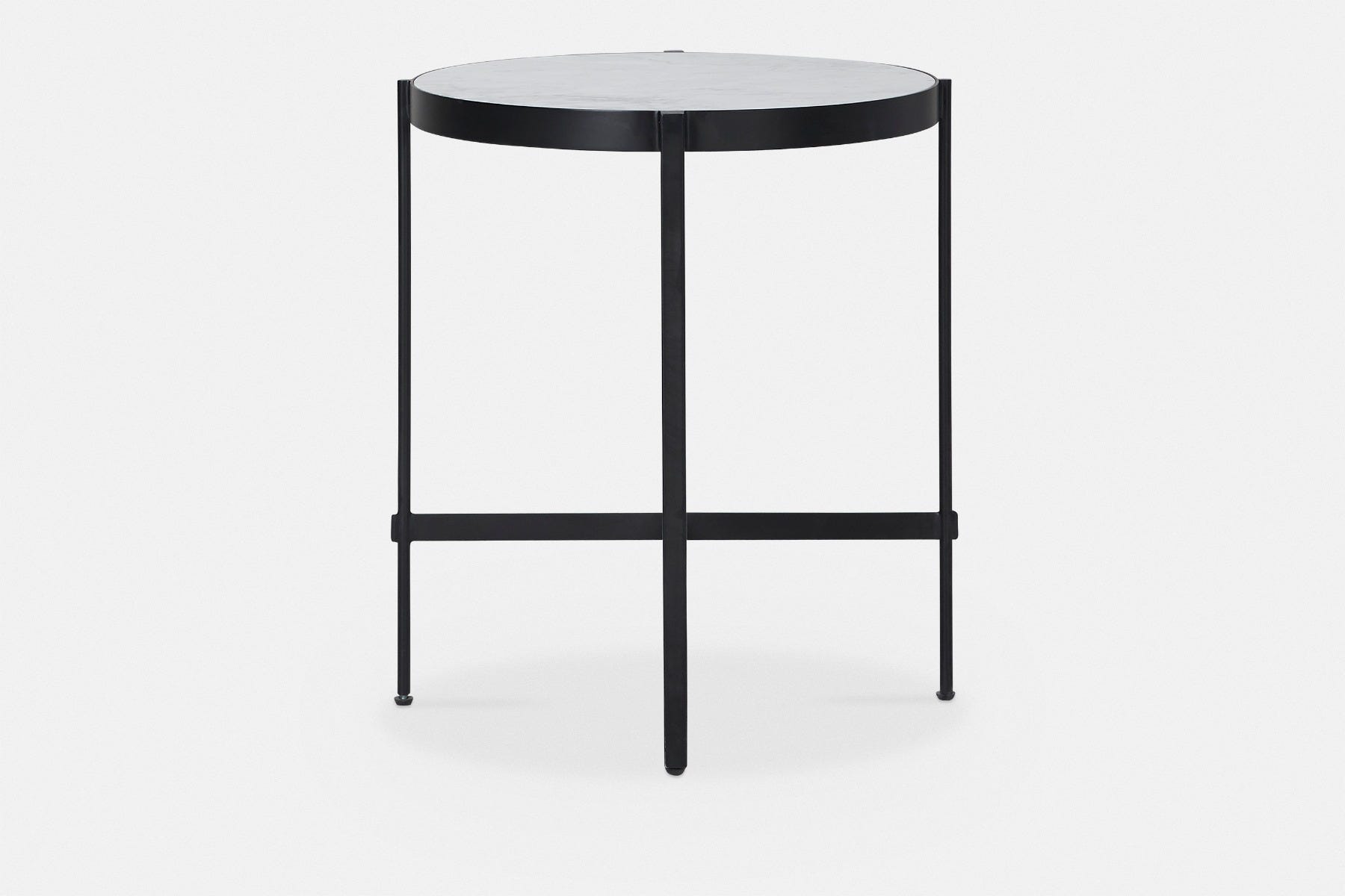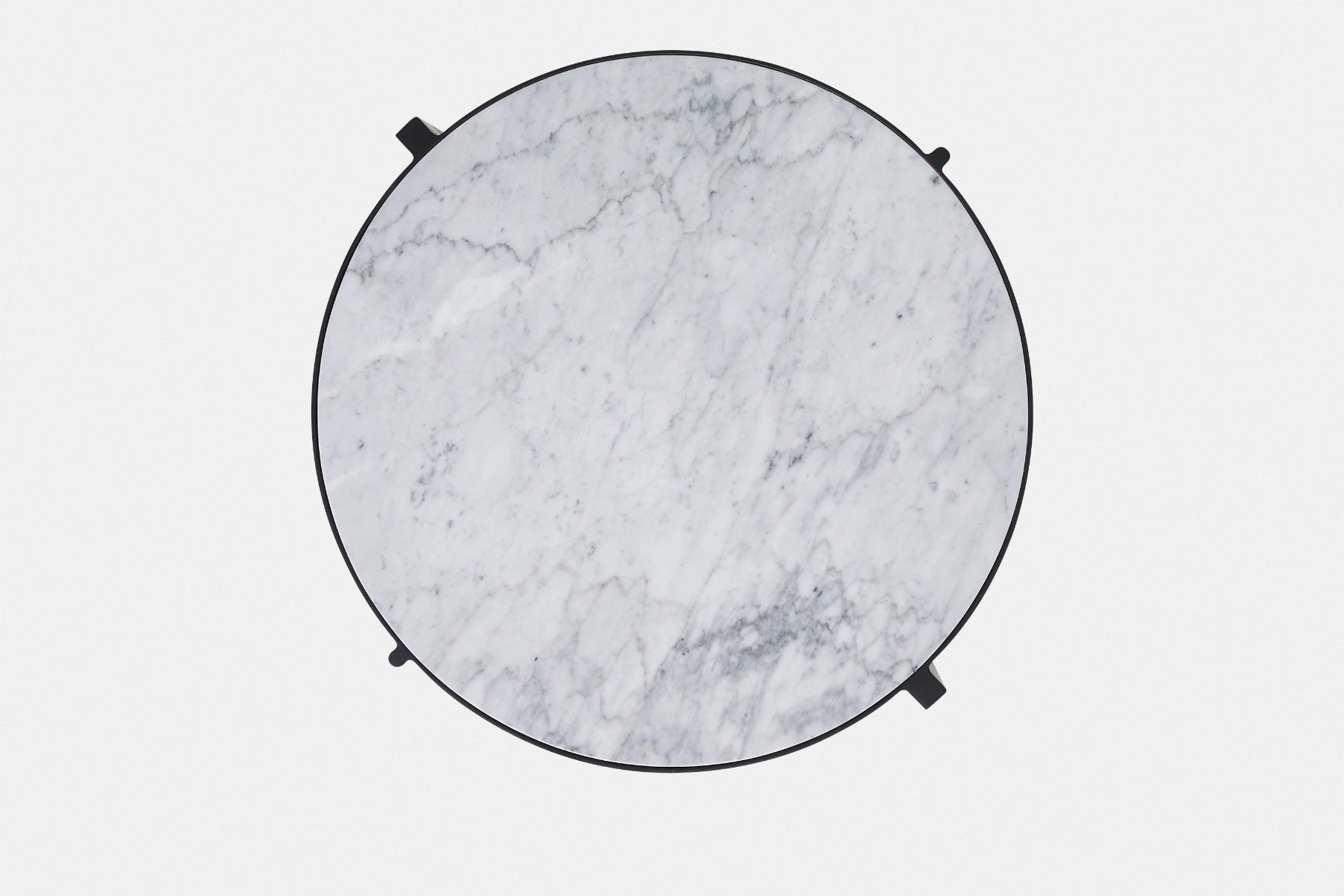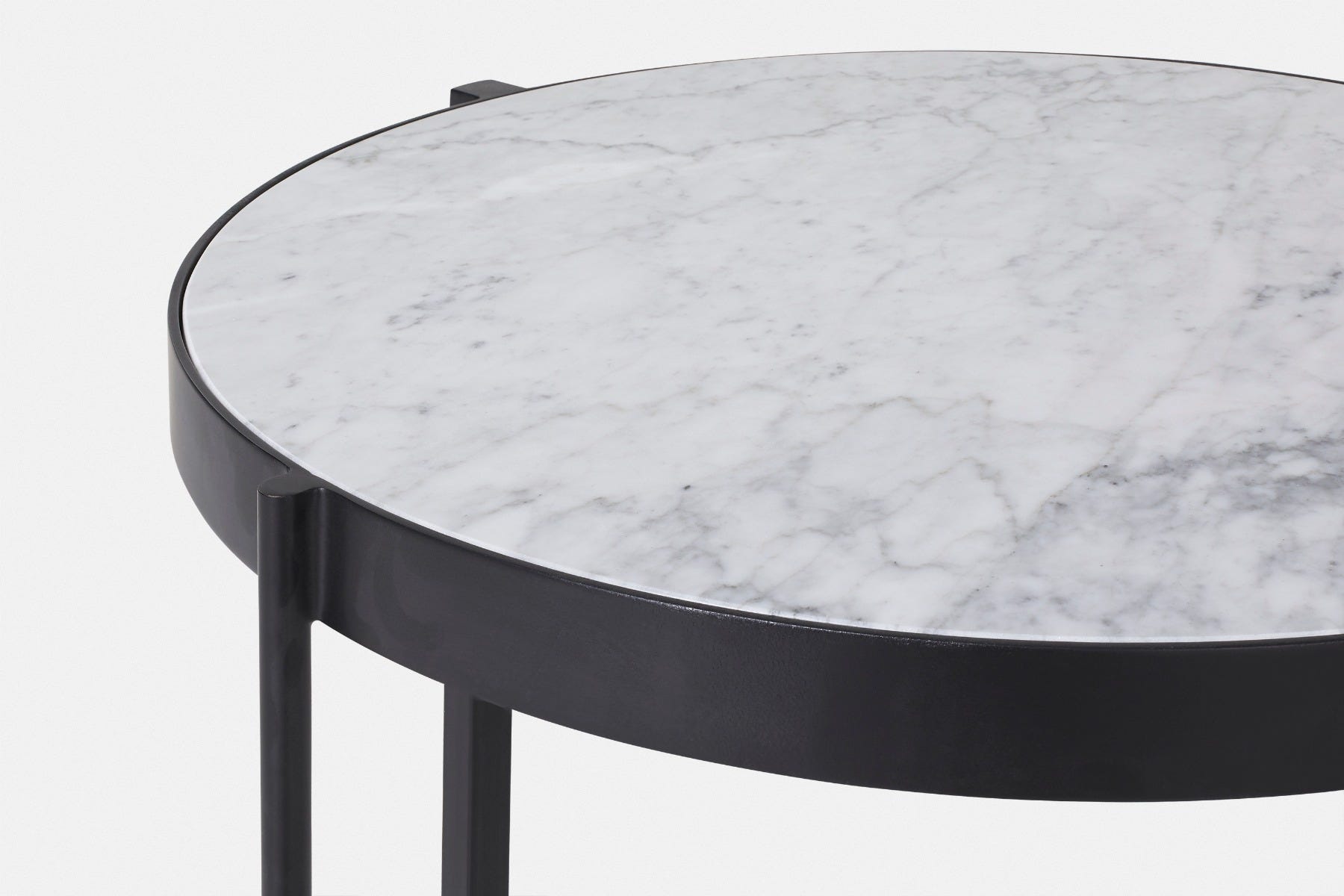 Willem blends seamlessly into any decor thanks to its compact size and sleek silhouette. Its black metal base is crowned with a round Carrara marble top.