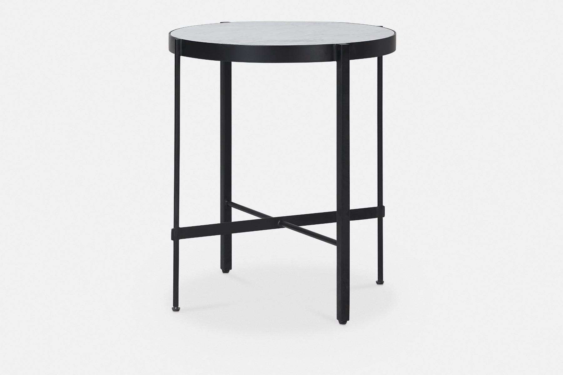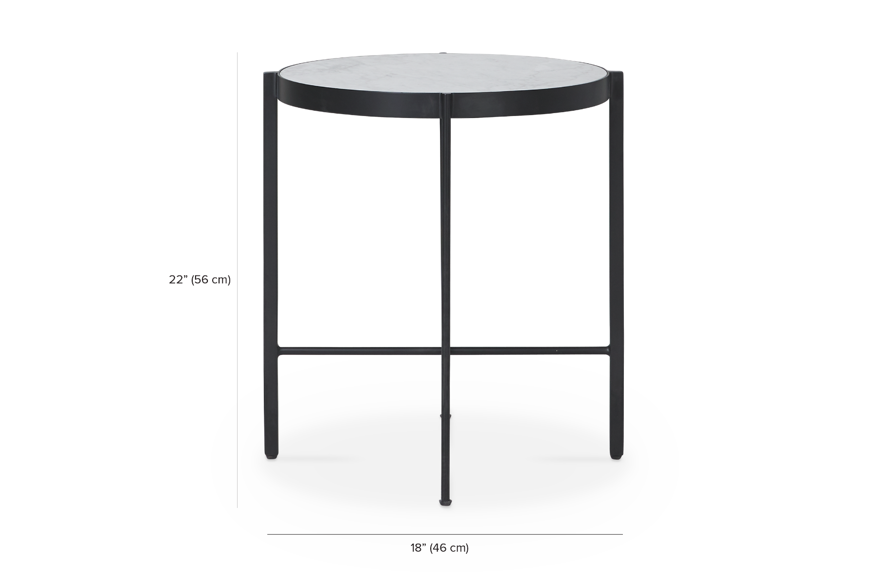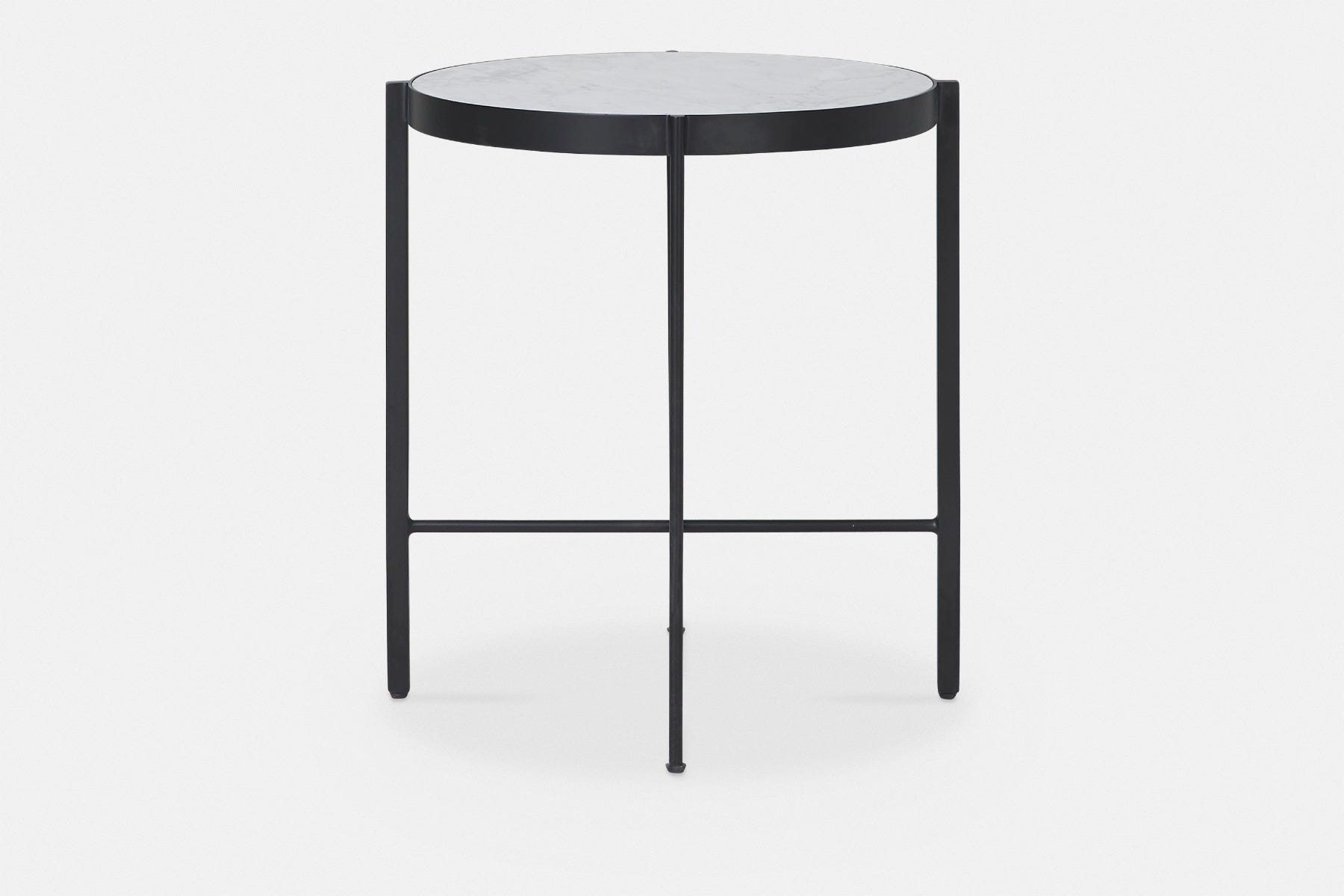 Willem blends seamlessly into any decor thanks to its compact size and sleek silhouette. Its black metal base is crowned with a round Carrara marble top.