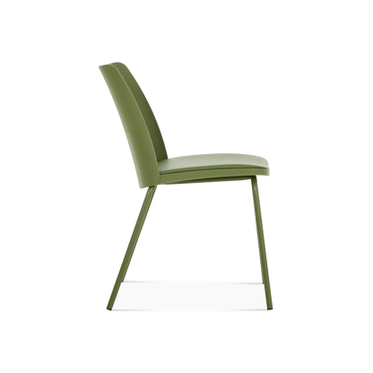 A classic design with a modern twist. The Yasu chair features a black-stained oak veneer seat with a gently curved backrest and slender metal legs. Its armrest-free silhouette glides easily under any table while its monochromatic appearances create a striking contrast when paired with materials like stone. Functional, elegant and minimalist, it will adapt to any decor.