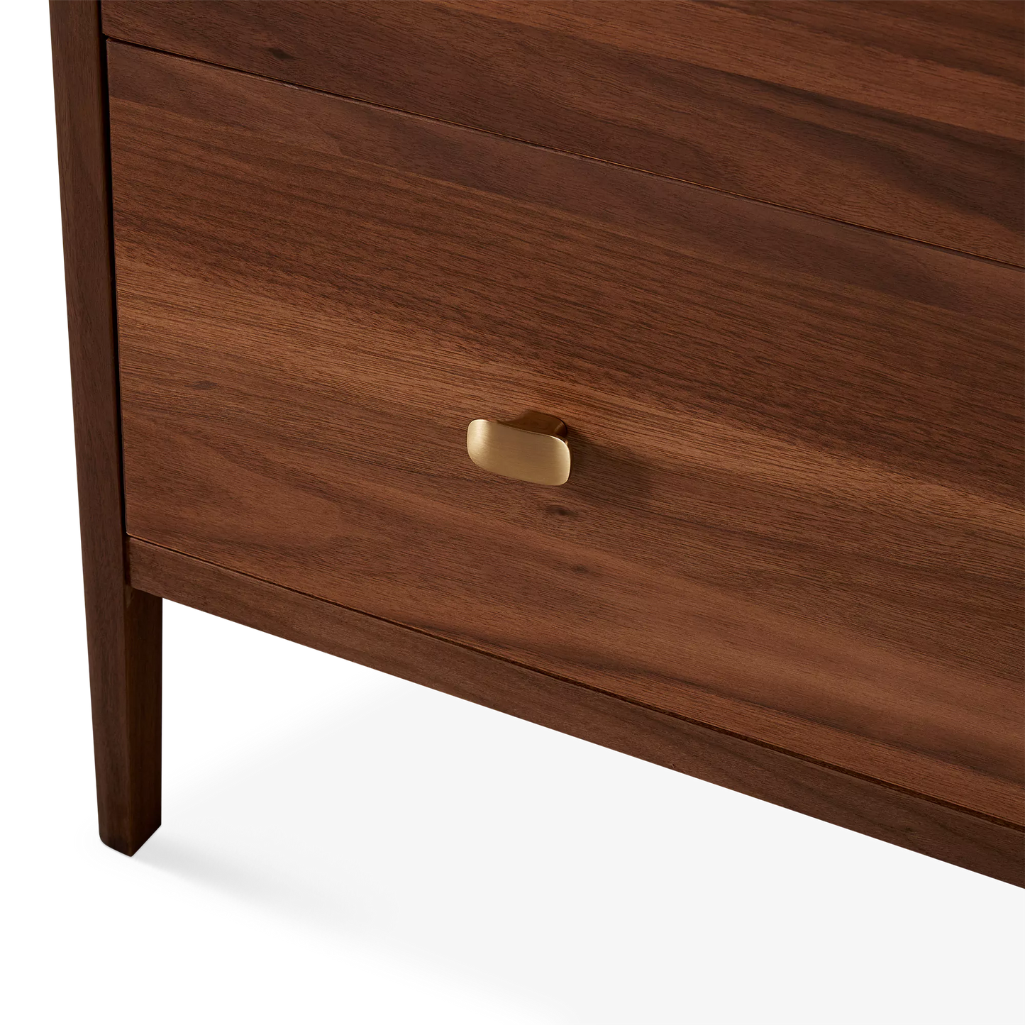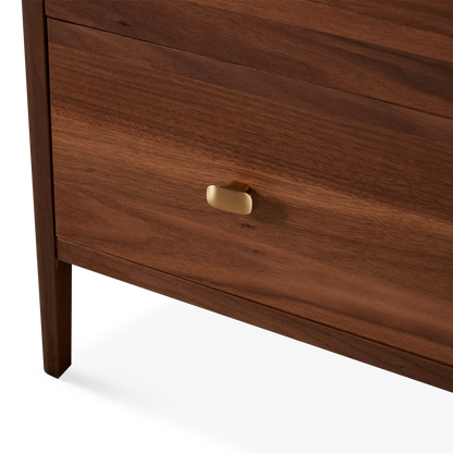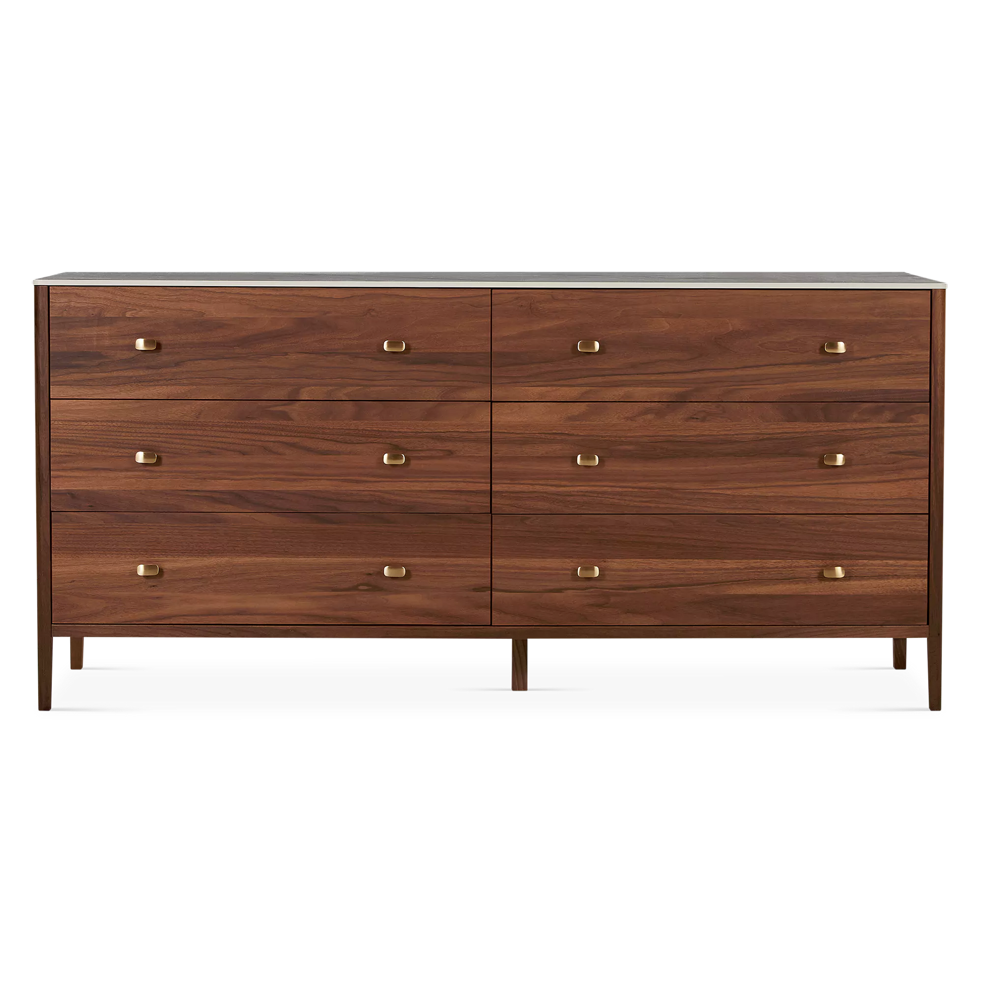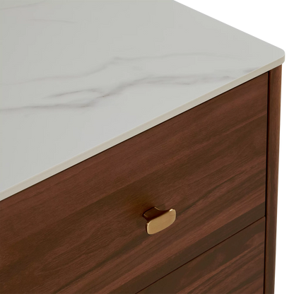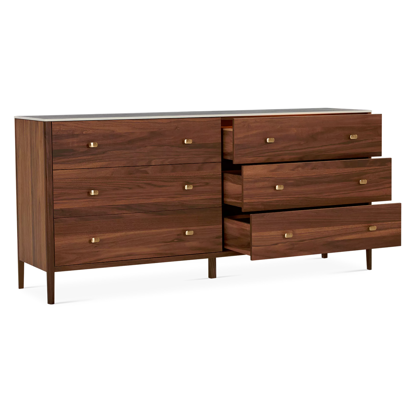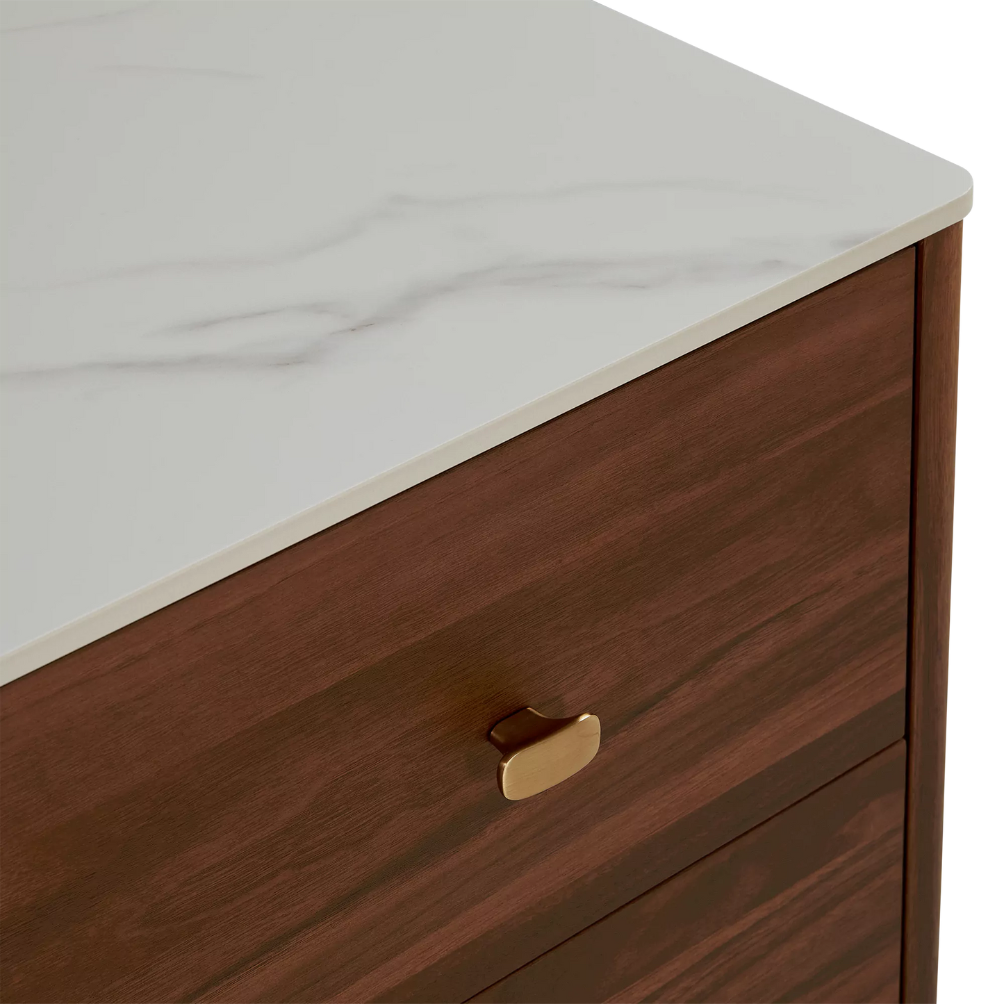 Sleek functionality meets refined design with the Zara 6-drawer dresser. Crafted from smoked walnut wood, topped with elegant porcelain and illuminated by subtle LED lighting in the top drawers, this spacious dresser is as beautiful as it is practical. The soft-close slides of its drawers ensure a smooth, silent experience, culminating in a sophisticated storage solution for any modern, thoughtfully designed space.