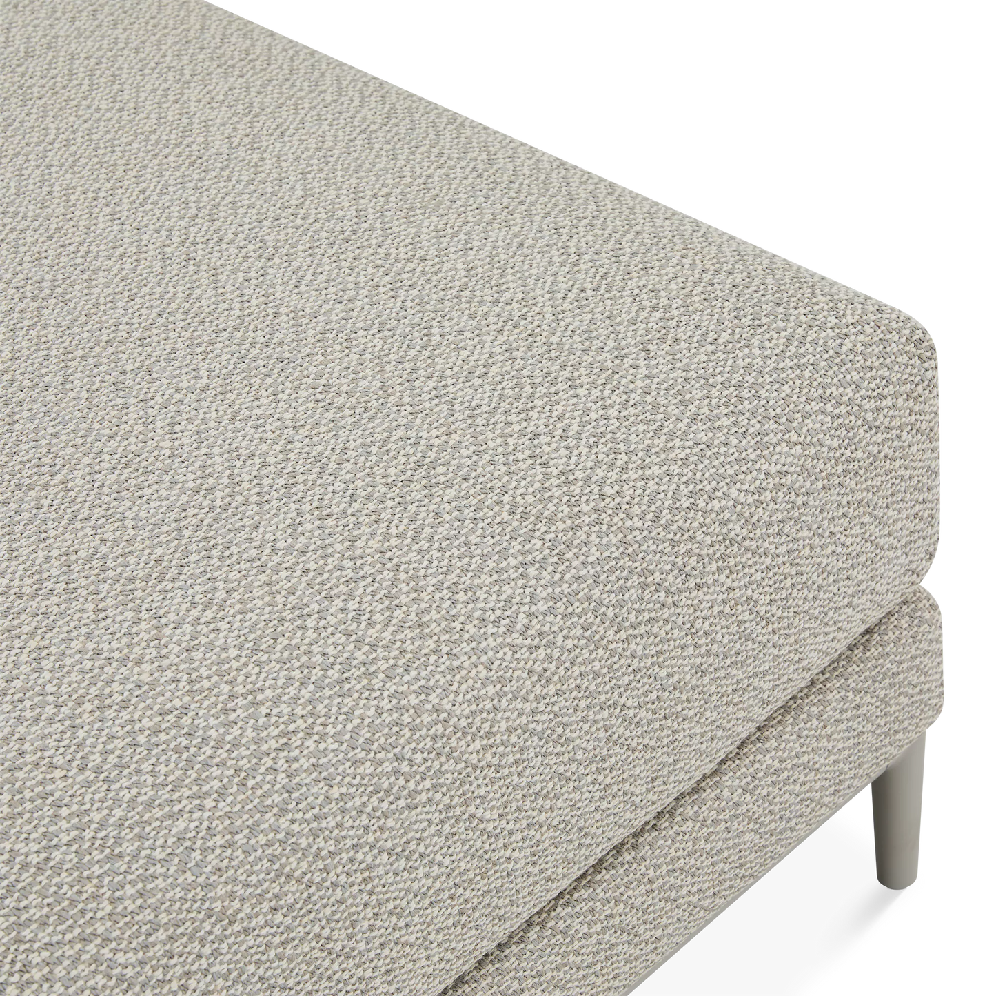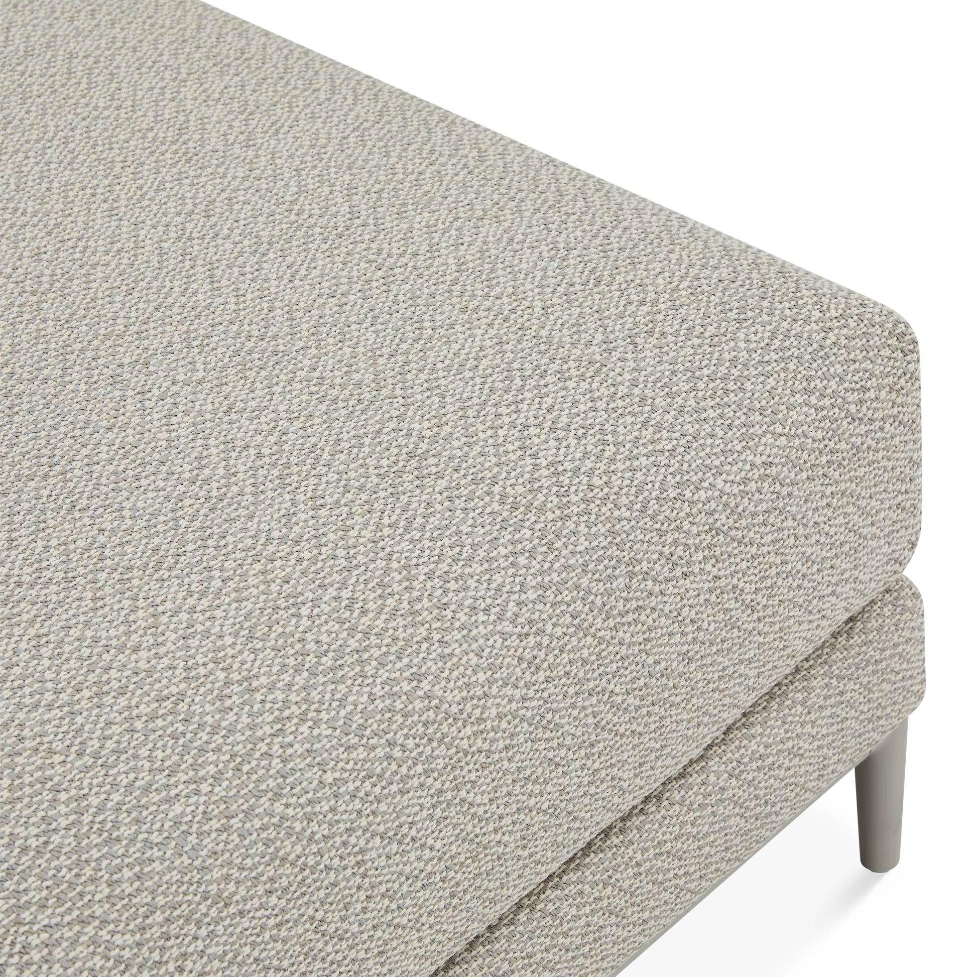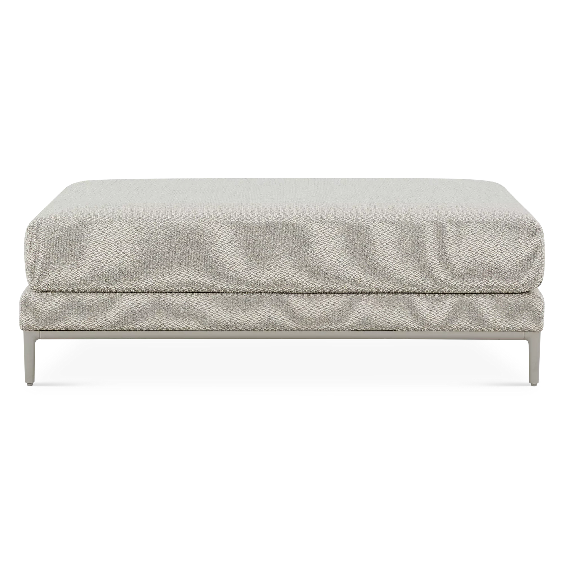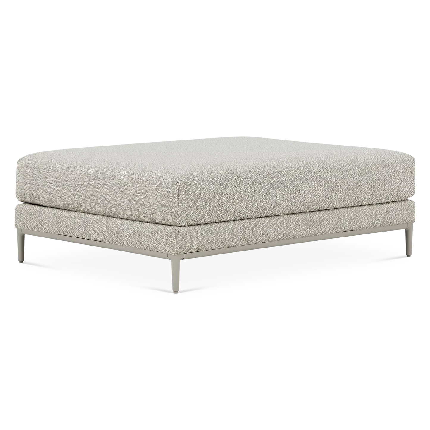 This large footrest is part of the Zendo Sense collection that includes a sectional sofa, loveseat and lounge chair designed by Stephane de Winter, founder of renowned Belgian brand Manutti. Designed for outdoor living, it features an aluminium frame topped with a thick cushion upholstered in a new, ultra-chic textured fabric. A selection of upholstery fabrics is available by special order.
